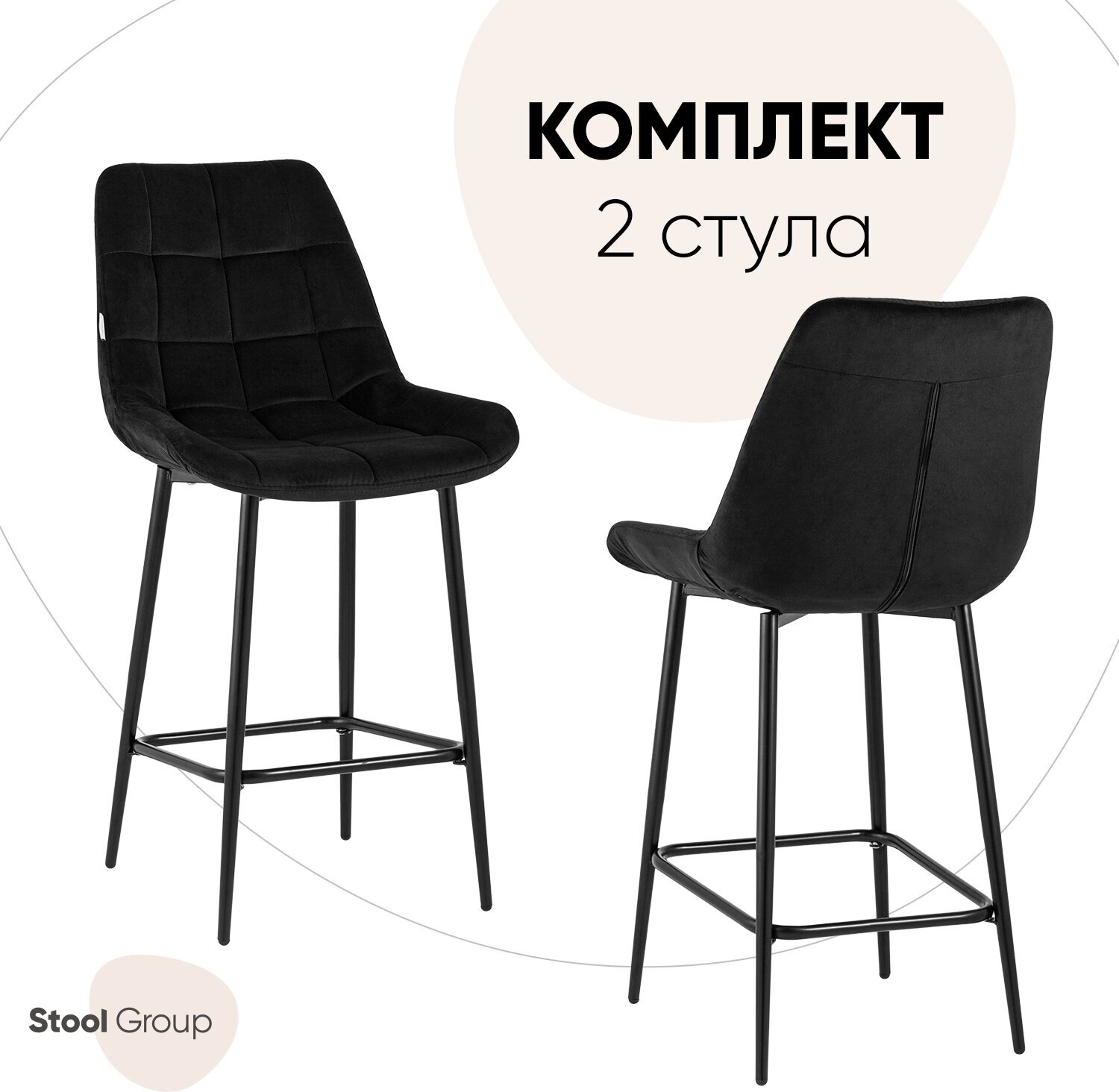 Купить Комплект полубарных стульев 2 шт Флекс велюр черный