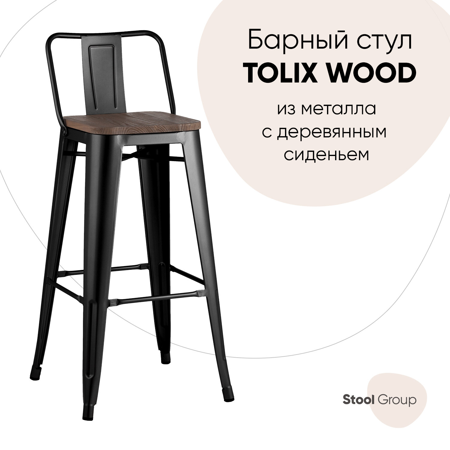 Барный стул Stool Group Tolix Wood со спинкой черный глянцевый, темное дерево