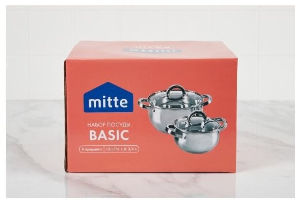 Набор кастрюль с крышками MITTE Basic 2 шт. 3,4 и 1,8 л, подходят для всех типов плит интересное:
