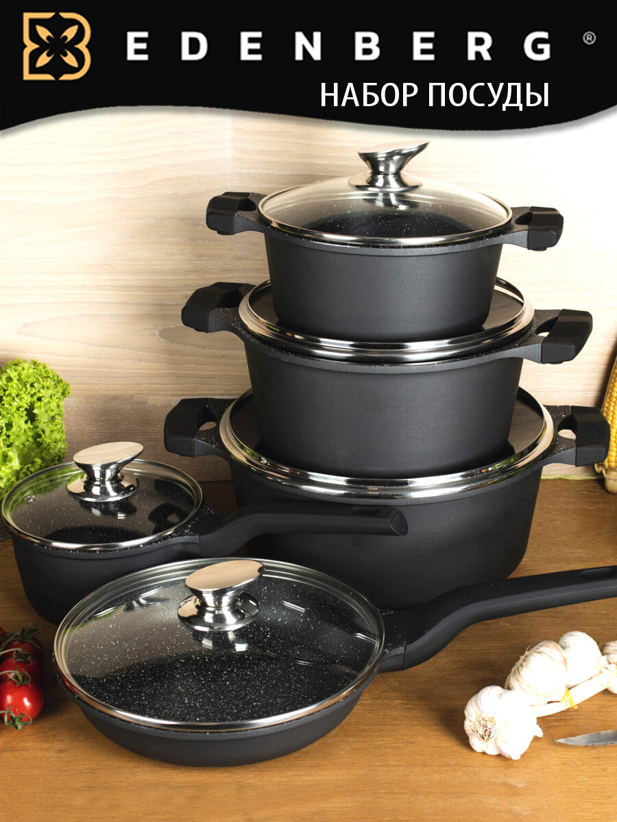 Набор посуды Edenberg EB-5650,10шт,черный,алюминий. интересное: