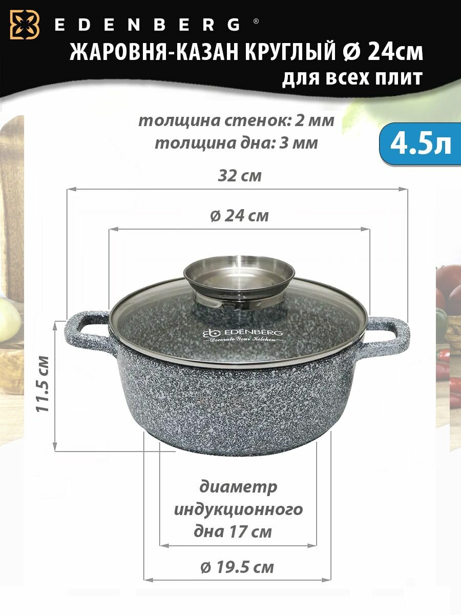 Казан круглый с крышкой Edenberg Gris для духовки и всех видов плит 4.4 л 24 см