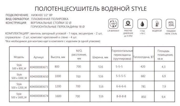 Полотенцесушитель водяной Ravak Style 500 x 1000 интересное: