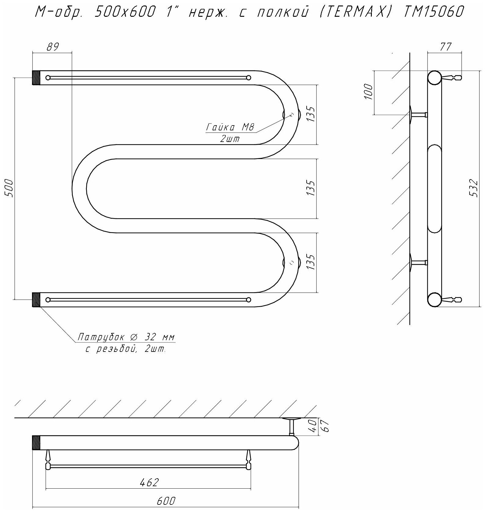 Полотенцесушитель Termax M-образный 500х600 1 нержавеющая сталь с полкой ТМ15060 интересное: