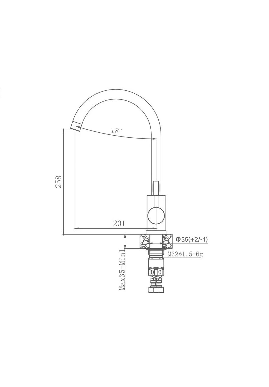 Haiba Смеситель для кухни (нерж.сталь) трубчатый поворотный излив,кар.35мм,гайка,сталь,HB71304-3