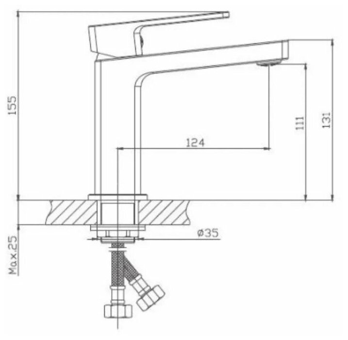 | Комплектация | Смеситель, паспорт изделия, керамический катридж 35 мм., аэратор, гибкая подводка 45 см. |