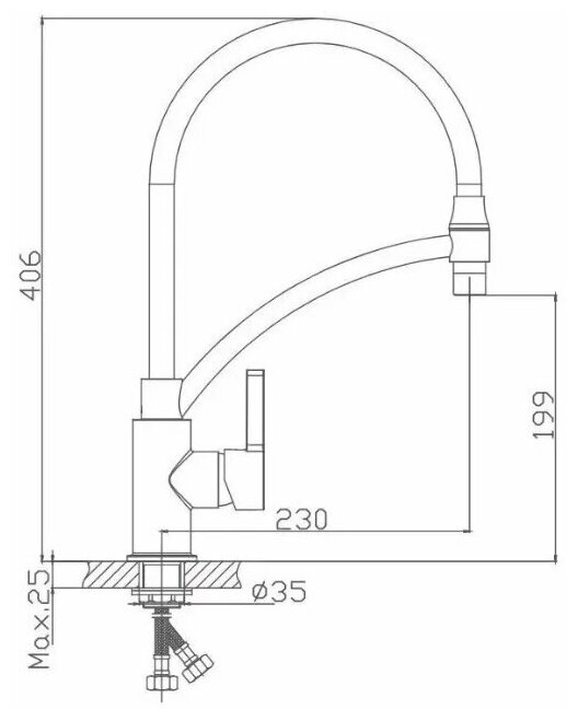| Комплектация | Смеситель, гибкий излив, держатель излива, гибкая подводка 40см, крепление, аэратор |