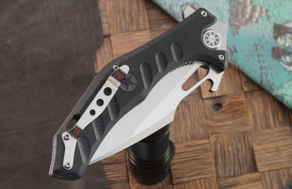 ?? Материал рукоятки стеклотекстолит G10, материал лезвия сталь D2 (твердость 58 HRC); ?? Нож имеет крюк-вейв, который ускоряет время выкидывания лезвия; ?? Бекспейсер также выполнен из G10, на его тыльной части находятся насечки под большой палец для обратного хвата; ?? Спуски плоские и высокие с равномерным сведением около 0,5 мм. по всей длине; ?? Замок лайнер-лок. |