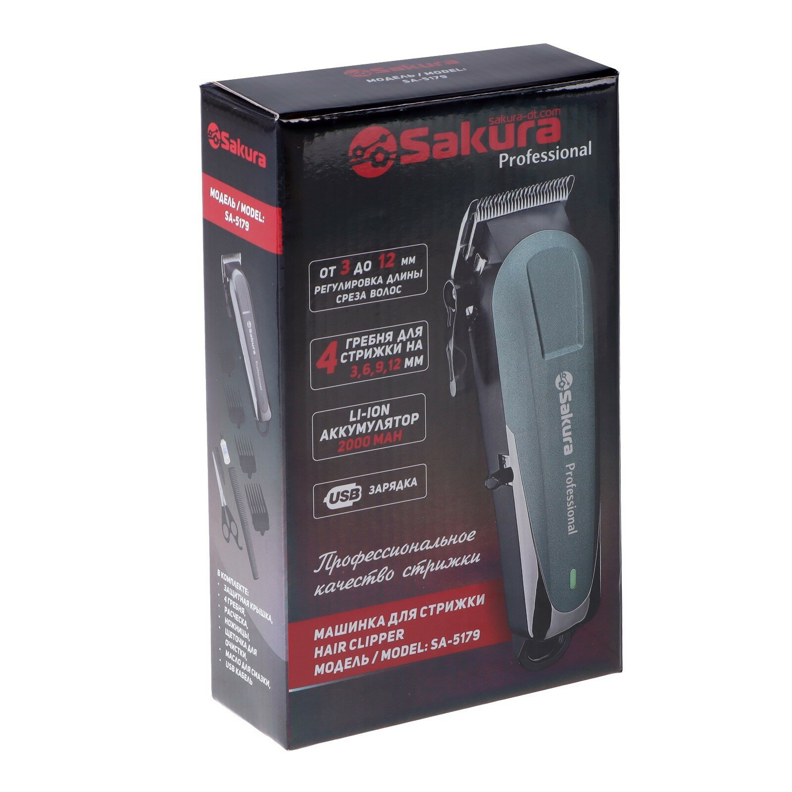 Купить Машинка для стрижки Sakura SA-5179BK Professional, 3-12 мм, 4 насадки, АКБ/220 В, серая