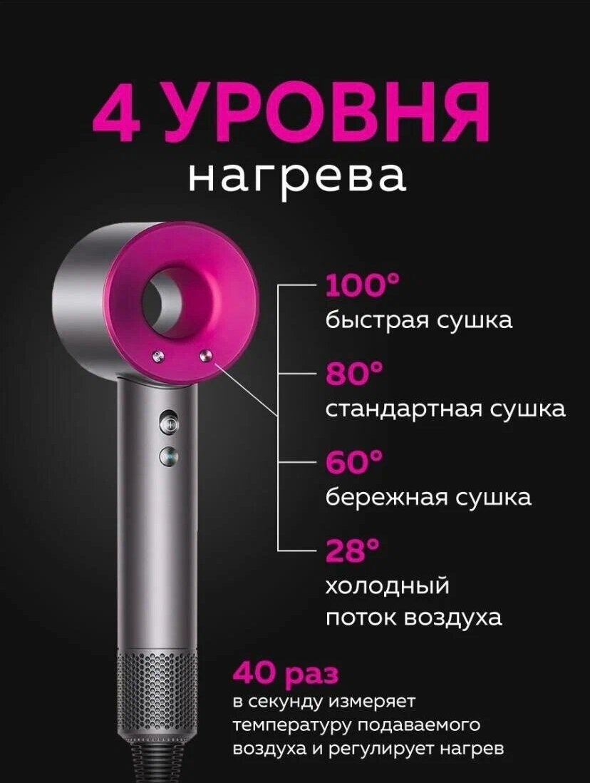 Профессиональный фен для волос iHair-1600 Super Hair Dryer 1600 Вт, 3 режима, 5 магнитных насадок, ионизация воздуха интересное: