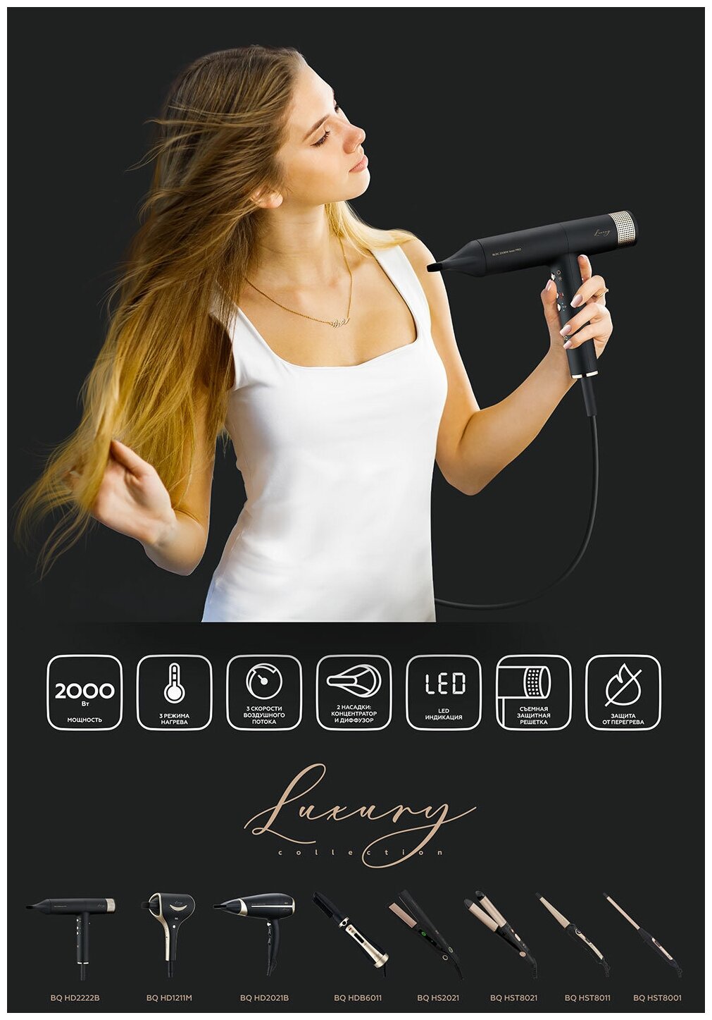 Фен BQ HD1211M LUXURY COLLECTION, черный/золотой