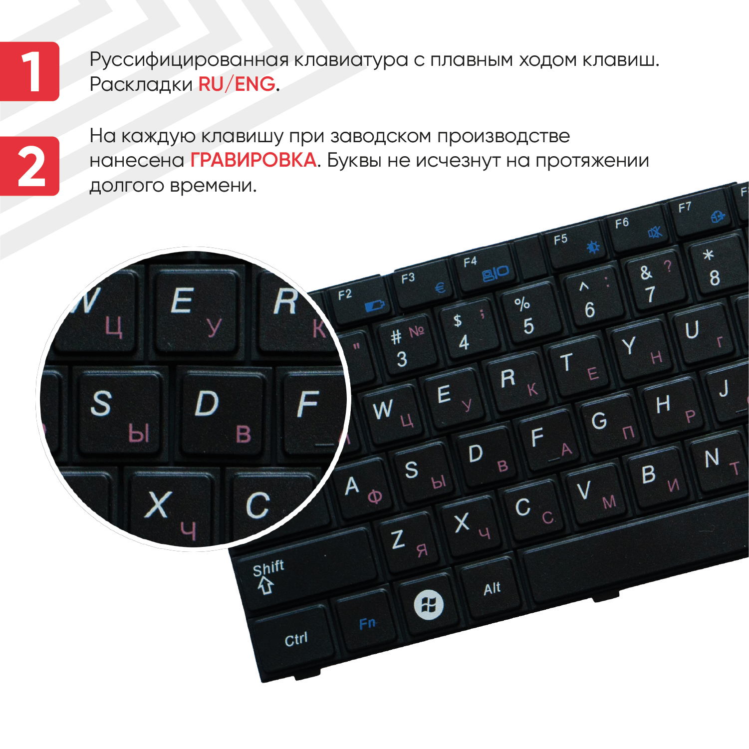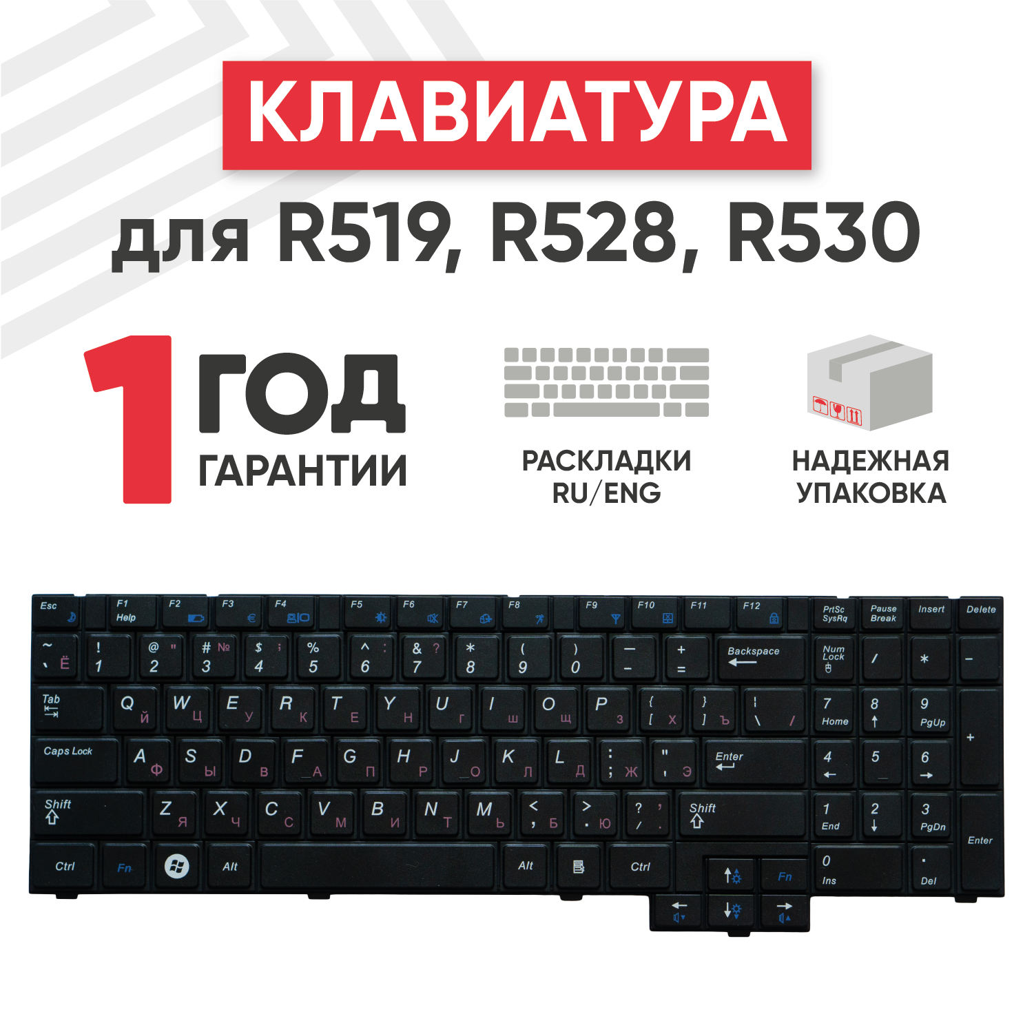 Клавиатура (keyboard) для ноутбука Samsung R519, R523, R525, R528, R530, R538, R540, R620, R717, R719, RV508, RV510, горизонтальный Enter, черная интересное: