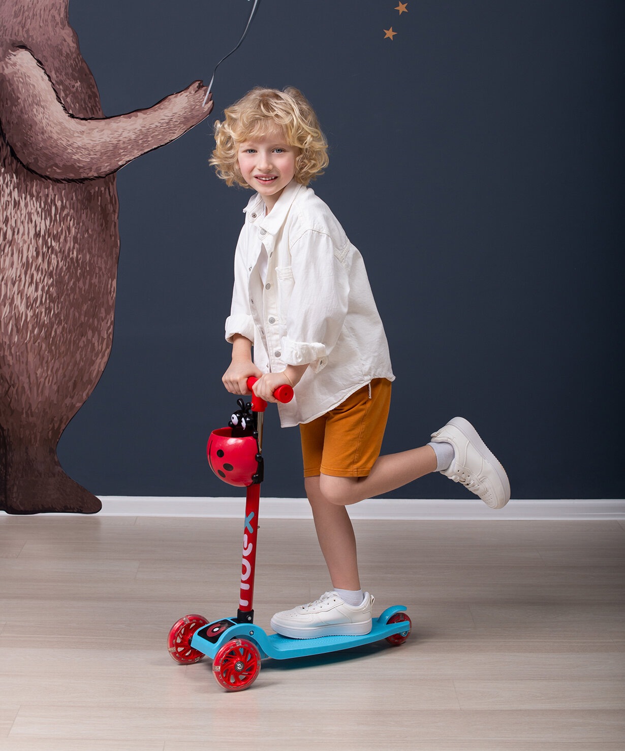 Без упаковки самокат Ridex 3-колесный Loop, 120/70 мм, голубой/красный интересное:
