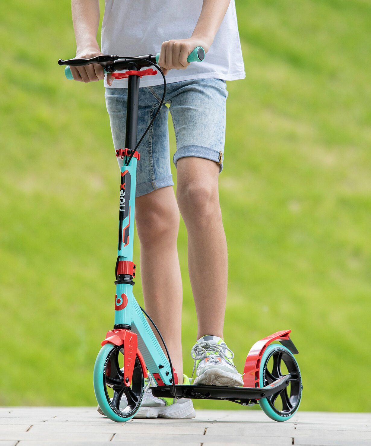 Купить Уценка самокат Ridex 2-колесный Rank 200 мм, ручной тормоз, мятный/красный
