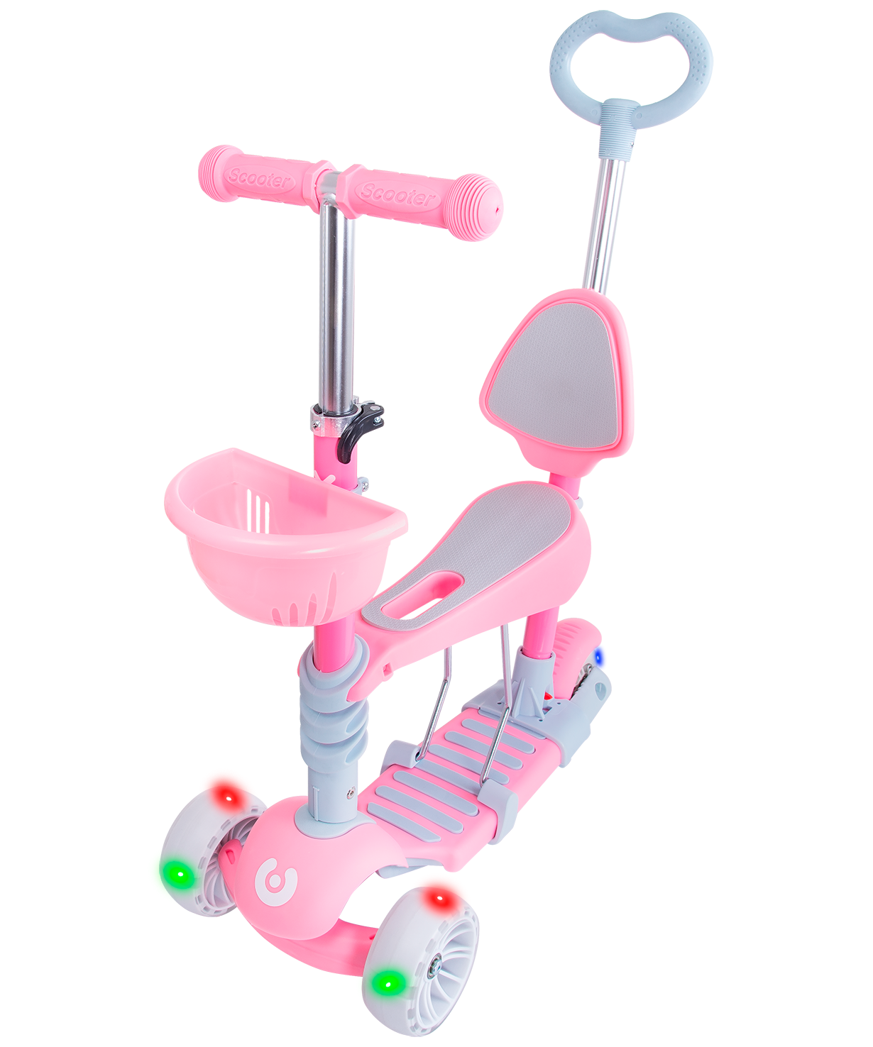 Самокат детский трехколесный COMIRON Yeenot "Зверята", регулируемая складная ручка, светящиеся колеса 110 и 75 мм, нагрузка до 40 кг, розовый / 1 шт.