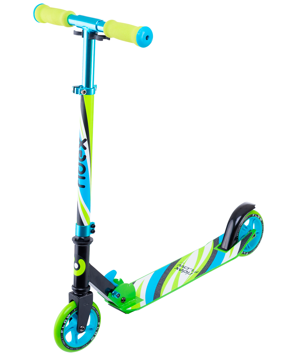 Купить Без упаковки самокат Ridex 2-колесный Flow 125 мм, голубой/зеленый
