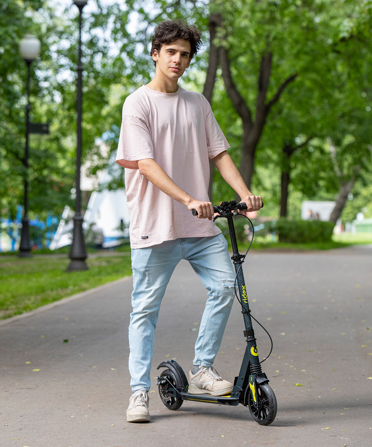 Купить Без упаковки самокат Ridex 2-колесный Trigger 200 мм, дисковый тормоз, черный/желтый