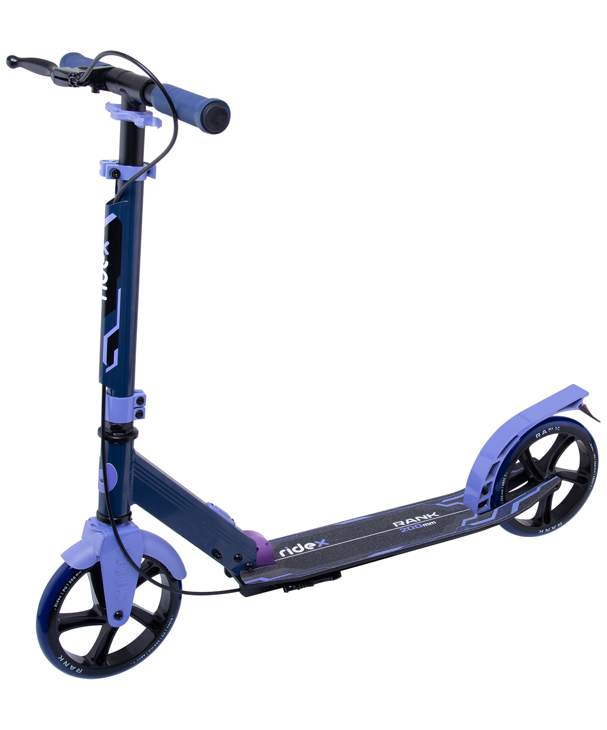 Купить Без упаковки самокат Ridex 2-колесный Rank 200 мм, ручной тормоз, синий/фиолетовый