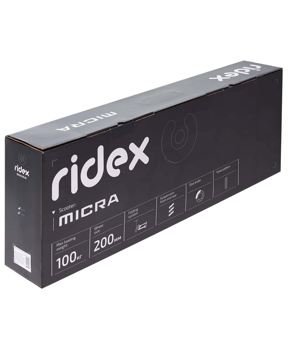 Самокат городской RIDEX Micra 200 мм, дисковый тормоз, черный