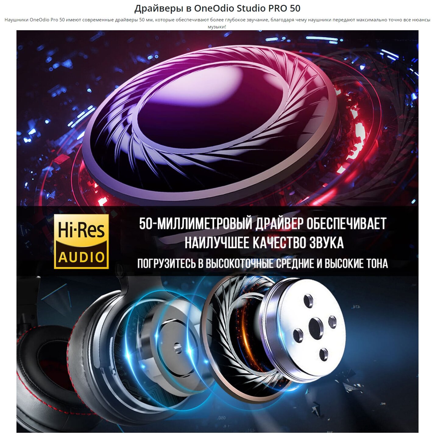 Наушники полноразмерные Oneodio Pro 50 black сьёмный кабель чёрные