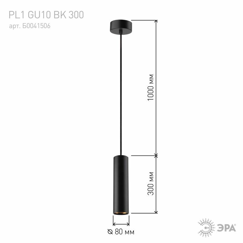 СохранитьPL1 GU10 BK 300 Подсветка ЭРА подвесной, GU10, D80*300мм, черный (20/240) интересное: