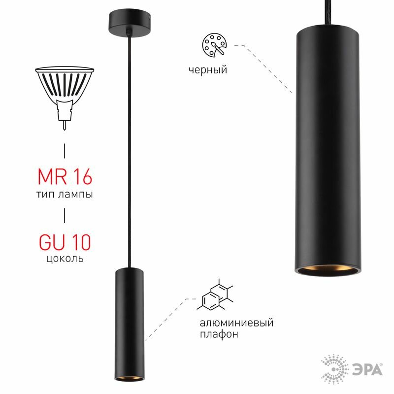 Купить PL1 GU10 BK 300 Подсветка ЭРА подвесной, GU10, D80*300мм, черный (20/240)