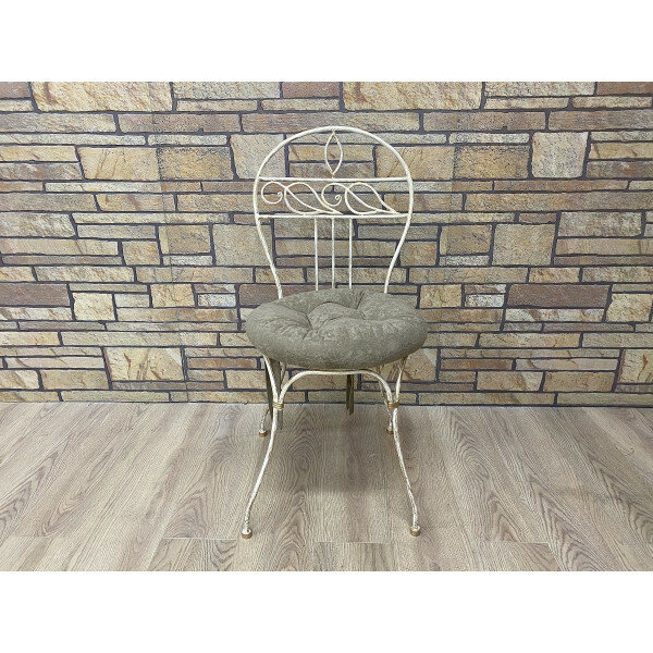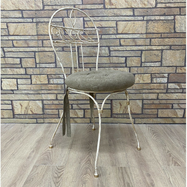 Стул обеденный Аврора №2 кованый цвет слоновая кость+патина солнечное золото, набивная подушка сиденья интересное: