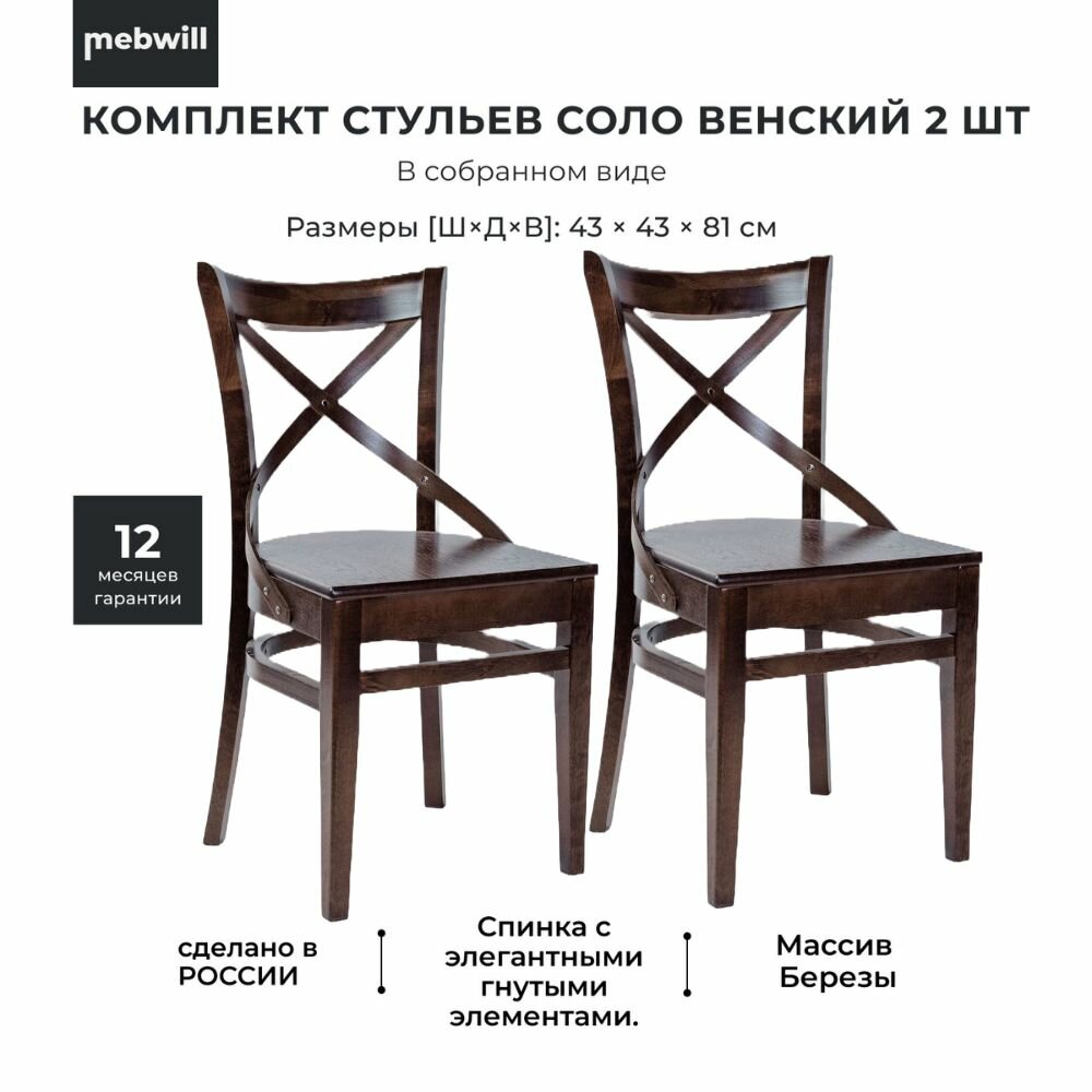 Комплект стульев Аврора Соло венский жесткий Орех темный/тон 7, 2шт интересное: