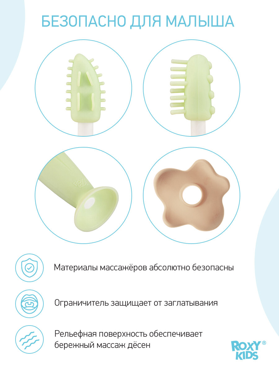 Набор Roxy-Kids: Зубная щетка + массажер + ограничитель, мятный