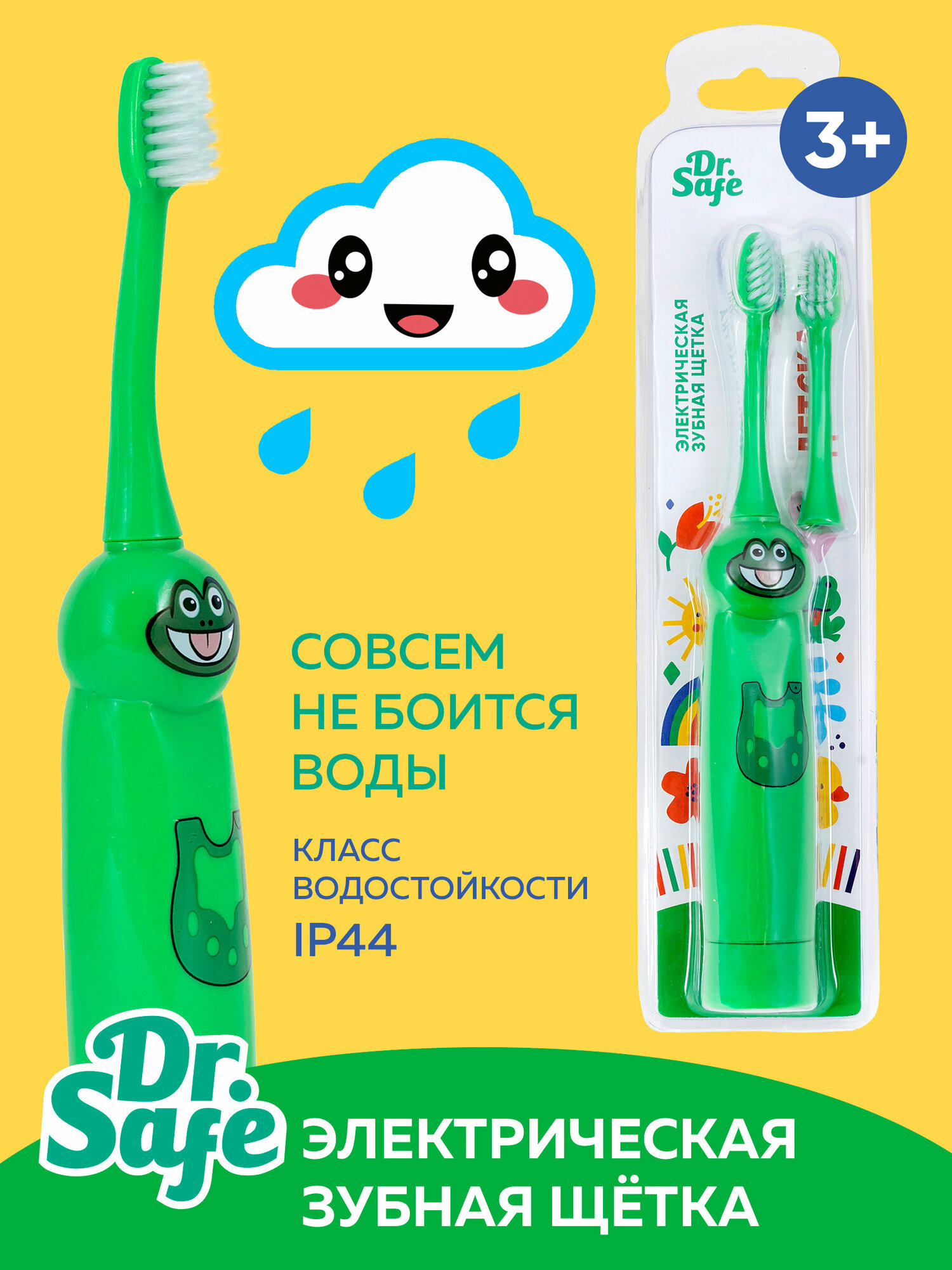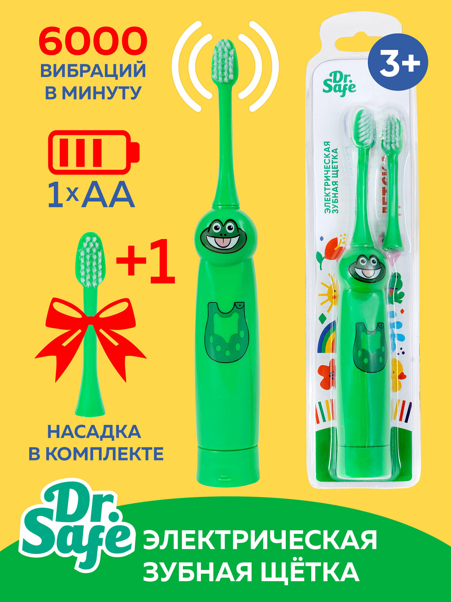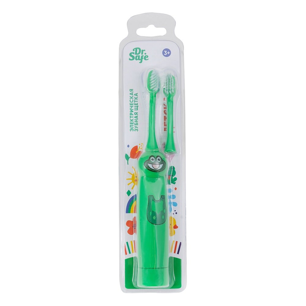 Купить DR.SAFE Детская электрическая зубная щетка Kids "Лягушка", 1 насадка, от 3 лет, на батарейках
