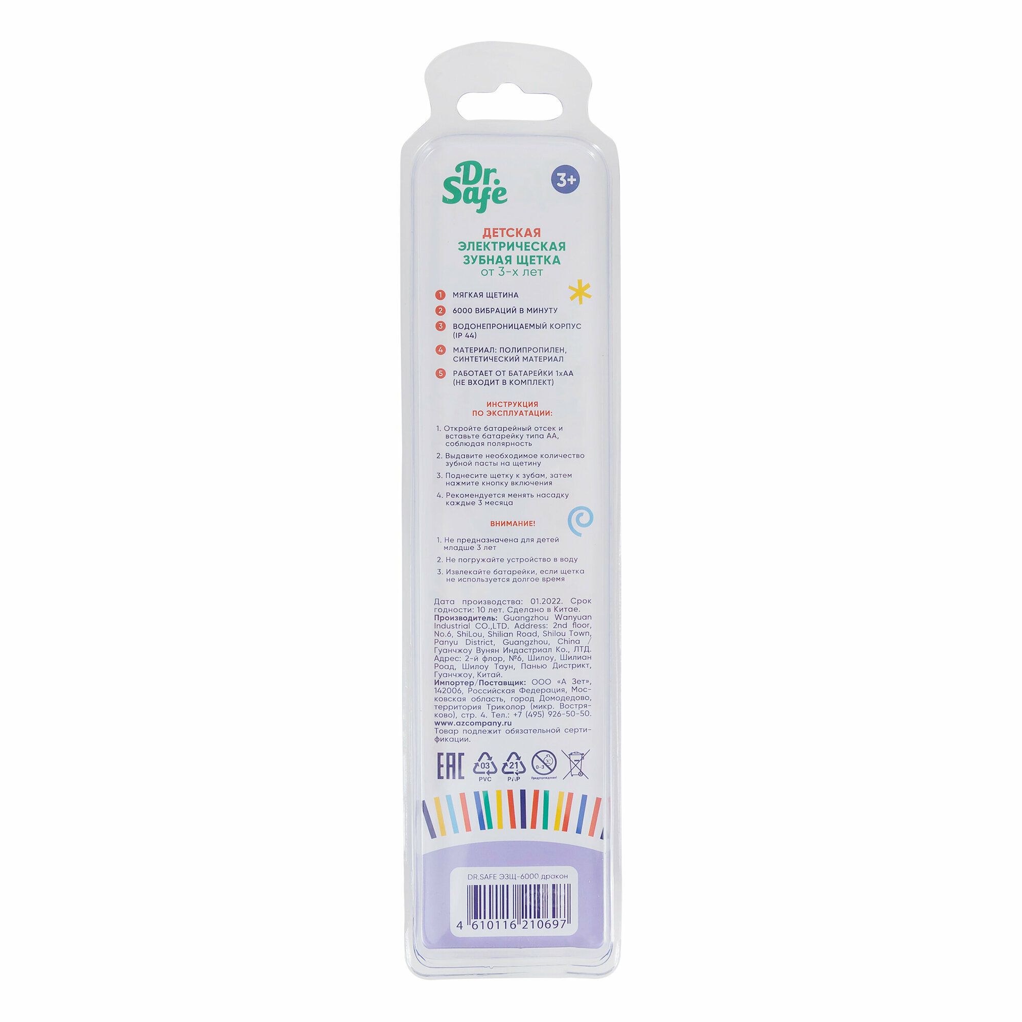 DR.SAFE Детская электрическая зубная щетка Kids "Дракон", 1 насадка, от 3 лет, на батарейках интересное: