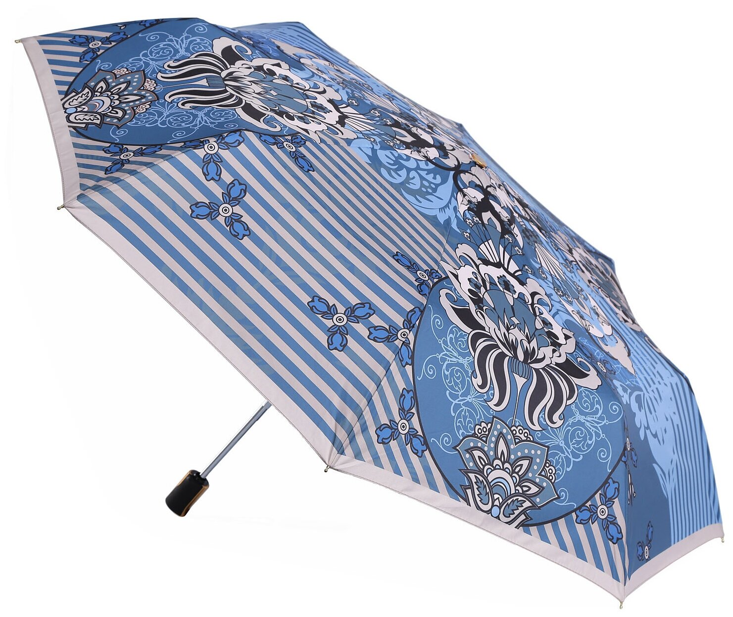 Зонт "Три Слона" женский №310-5, купол D=103 см, 10 спиц, суперавтомат бежево-черный