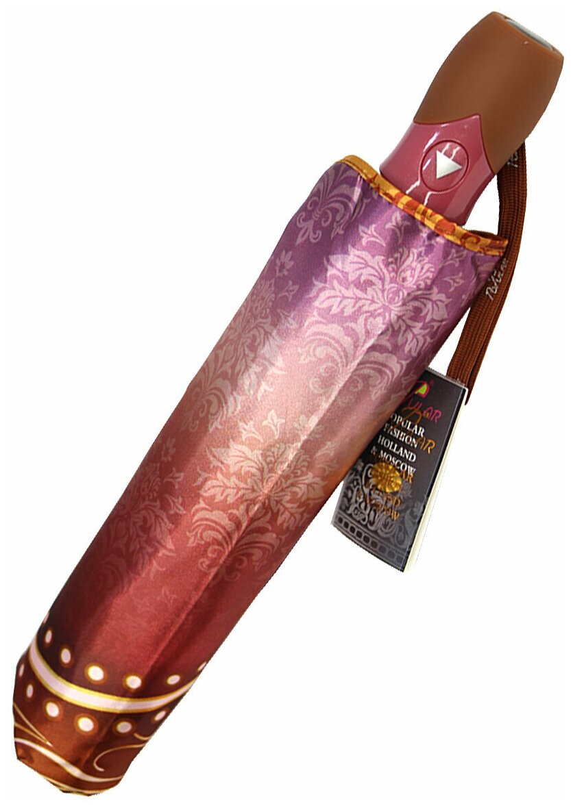 Женский складной зонт Popular Umbrella полуавтомат 1649/коричневый,розовый интересное: