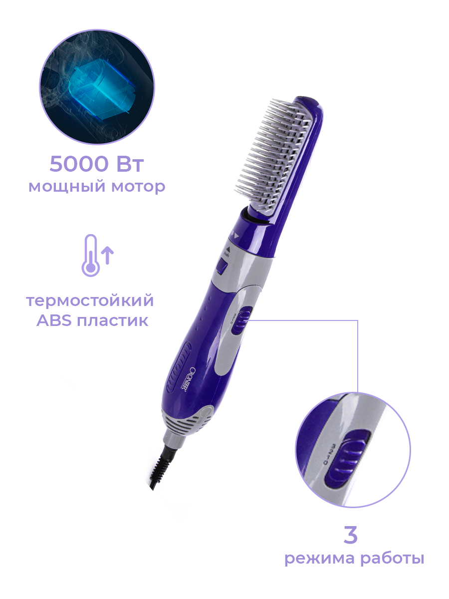 Фен расческа выпрямитель Cronier CR-800-1 профессиональный для укладки волос, синий интересное: