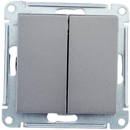 2 шт. Systeme Electric AtlasDesign Сталь Выключатель 2-клавишный сх.5, 10АХ, механизм, ATN000951