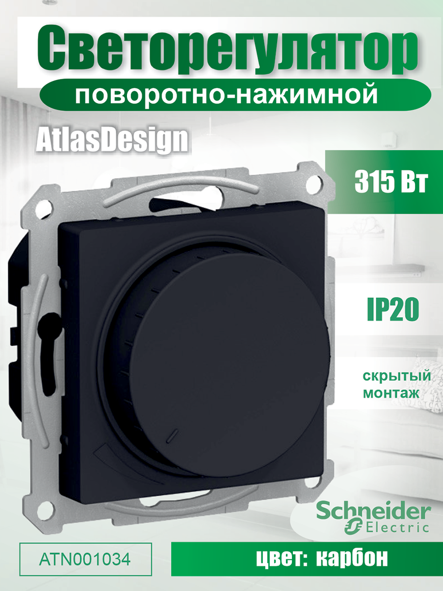 ATN000434 Светорегулятор поворотно-нажимной Schneider Electric AtlasDesign, 315 Вт, скрытый монтаж, жемчуг