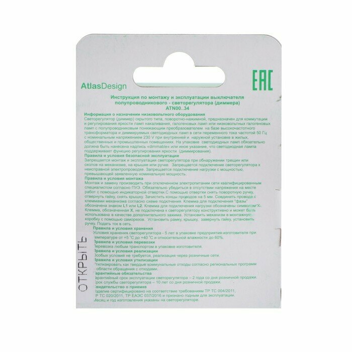 Ниже Вы можете прочитать отзывы на Диммер AtlasDesign поворотно-нажимной ATN001034, ознакомится с подробными характеристиками, посмотреть интересные обзоры и фотографии на Диммер AtlasDesign поворотно-нажимной ATN001034.