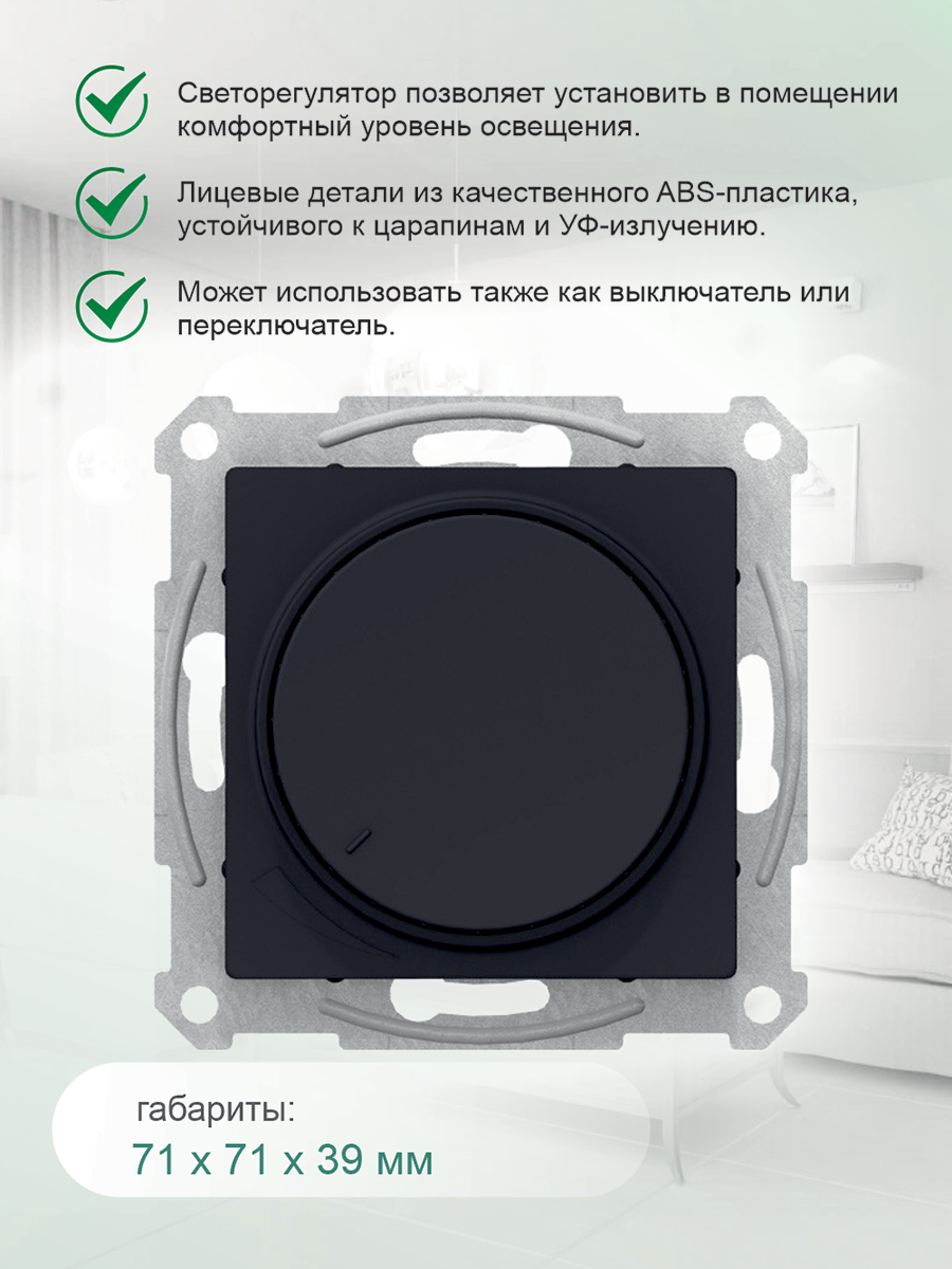 Диммер Schneider Electric AtlasDesign установка скрытая, управление механическое, IP20, алюминий [atn000334]