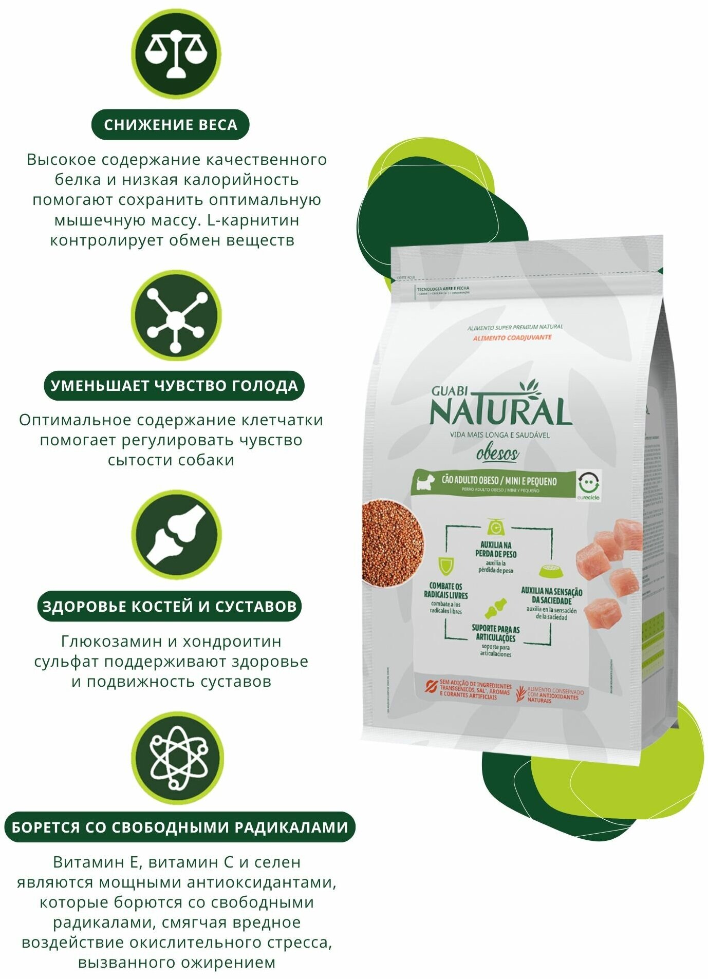 Ниже Вы можете прочитать отзывы на Guabi Natural Dog Obesity cухой корм для взрослых собак мелких пород с избыточным весом, с цыпленком и коричневым рисом - 10,1 кг, ознакомится с подробными характеристиками, посмотреть интересные обзоры и фотографии на Guabi Natural Dog Obesity cухой корм для взрослых собак мелких пород с избыточным весом, с цыпленком и коричневым рисом - 10,1 кг.