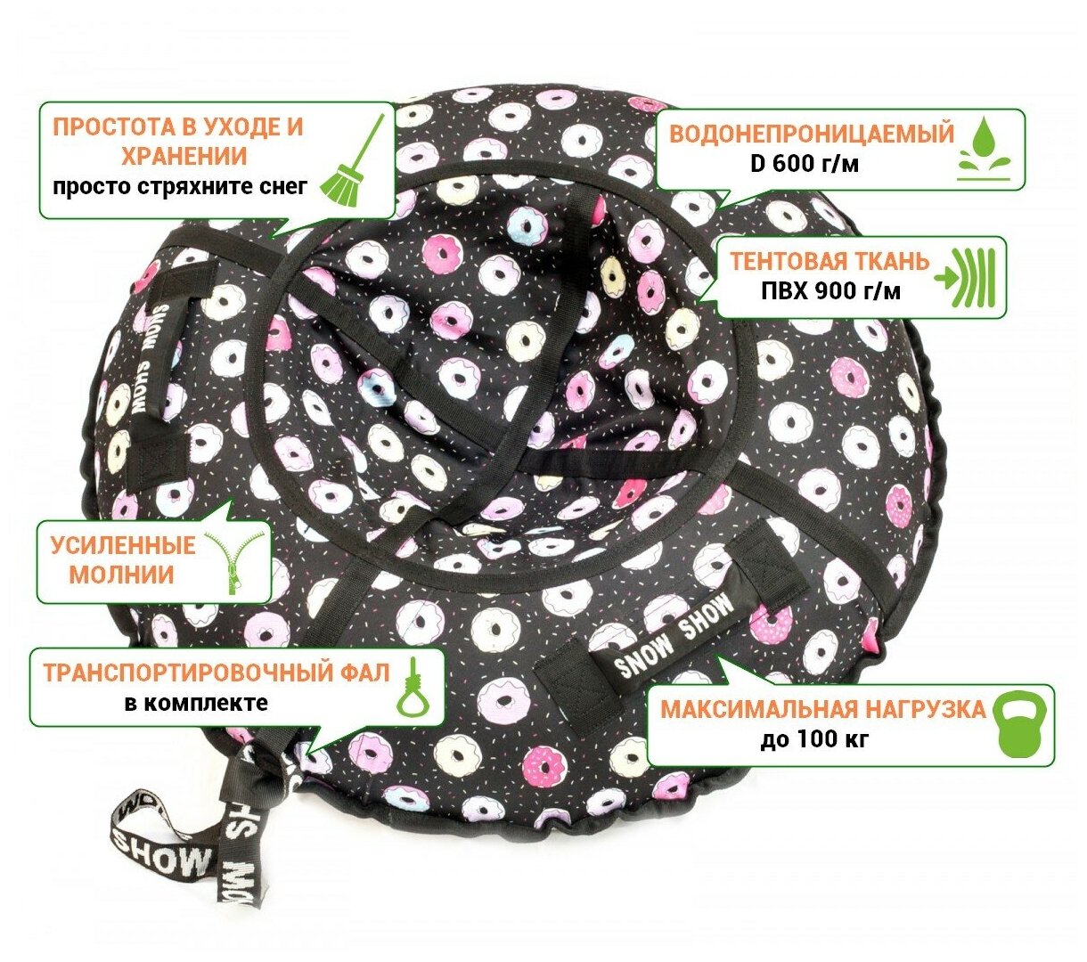 Купить Тюбинг-ватрушка SnowShow Стандарт Пончики 90см для детей