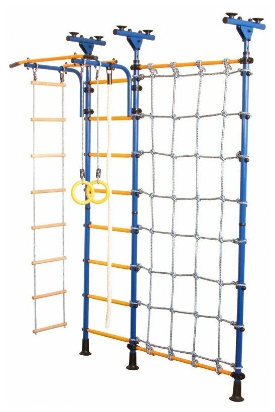 Купить Шведская стенка Юный Атлет «Распорный с сеткой для лазания», цвет Сине-желтый