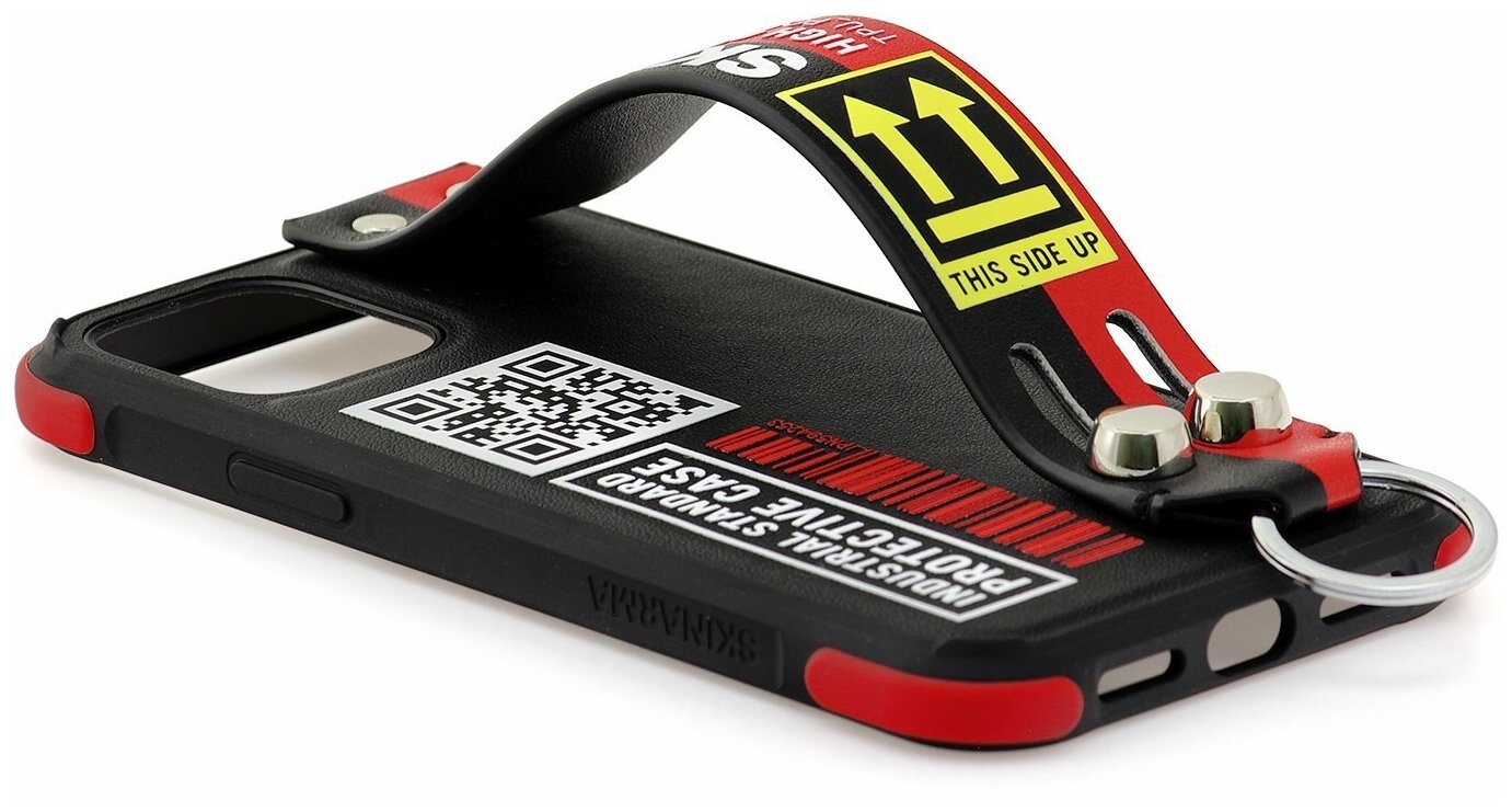 Чехол для iPhone 12/12 Pro Skinarma Hasso Red,противоударная пластиковая накладка с ремешком,силиконовый бампер с рисуном,кейс с подставкой интересное: