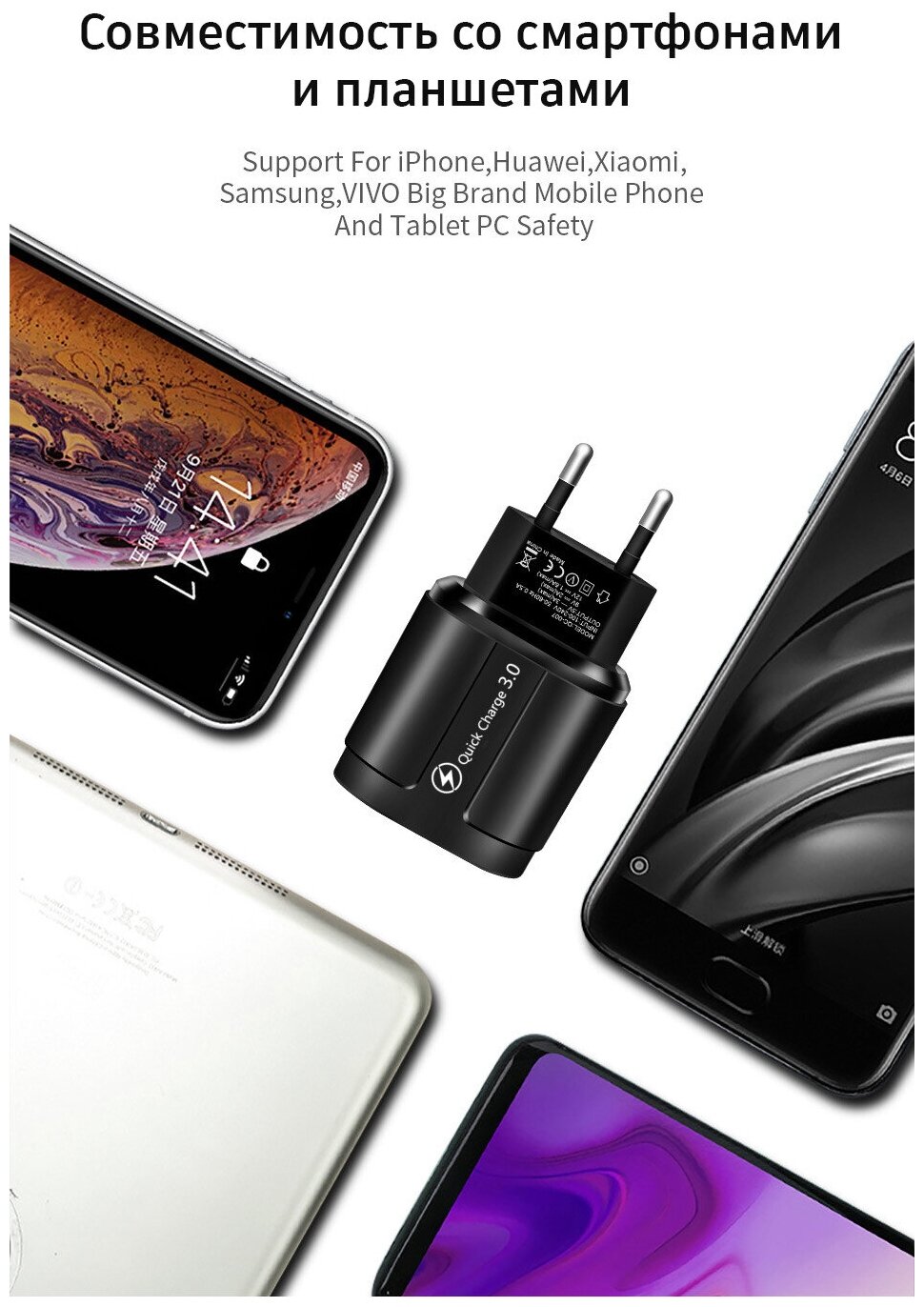 Сетевое зарядное устройство для телефона или планшета. Быстрая зарядка USB. 3 А, 18 Вт интересное: