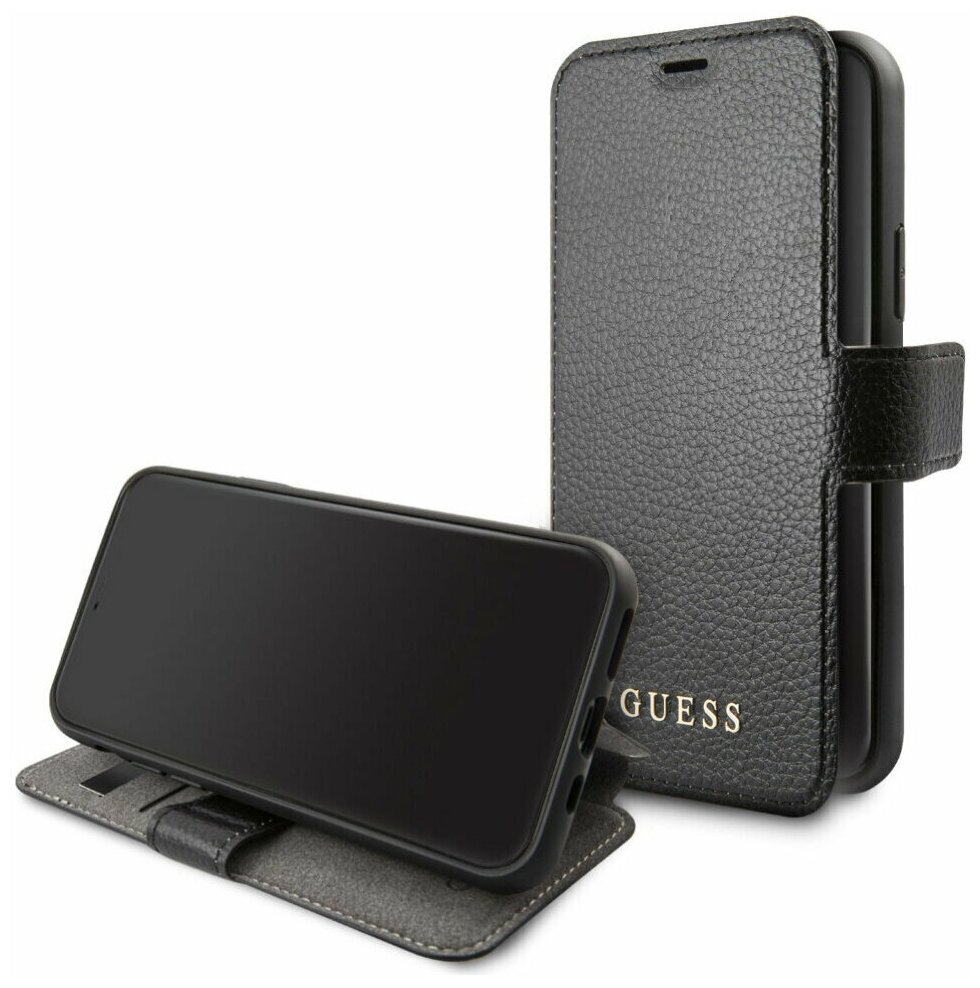 Чехол Guess Iridescent Booktype PU кожа для iPhone 12 | 12 Pro, черный интересное: