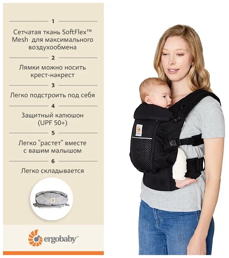 Рюкзак-кенгуру Ergobaby Adapt Soft Flex Mesh - Onyx Black интересное: