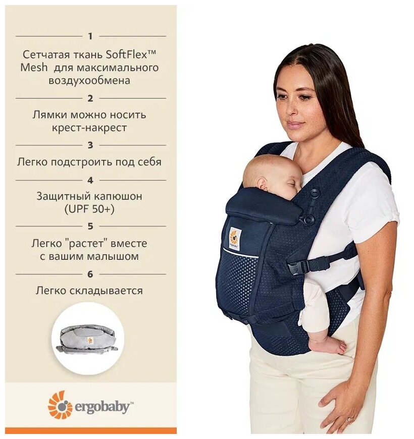Рюкзак-кенгуру Ergobaby Adapt Soft Flex Mesh - Midnight Blue интересное: