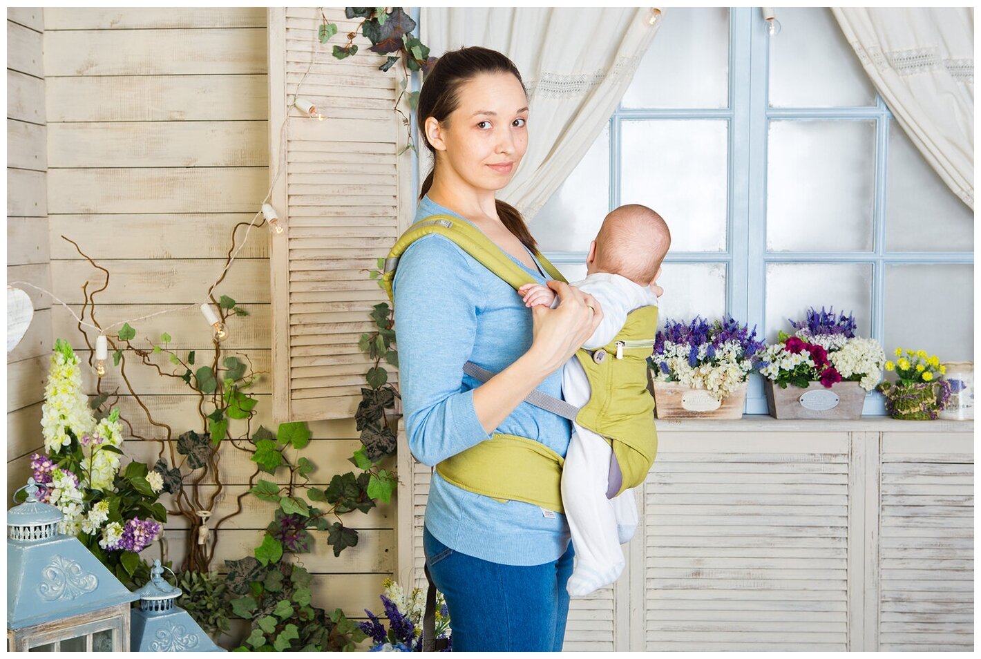 Купить Эргорюкзак с 4 месяцев и до 15 кг, 4 положения ребенка. Фисташковый