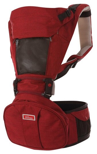 Купить Хипсит с карманом под сиденьем, со спинкой на двух лямках, с сумкой для переноски Sinbii Premium Hipseat S-Pocket Set. Красный