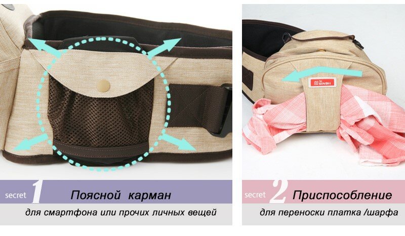 Хипсит с карманом под сиденьем, со спинкой на двух лямках, с сумкой для переноски Sinbii Premium Hipseat S-Pocket Set. Фиолетовый интересное: