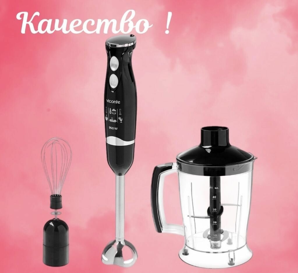 Блендер Viconte VC-4423, погружной, 950 Вт, 3 насадки, 2 скорости