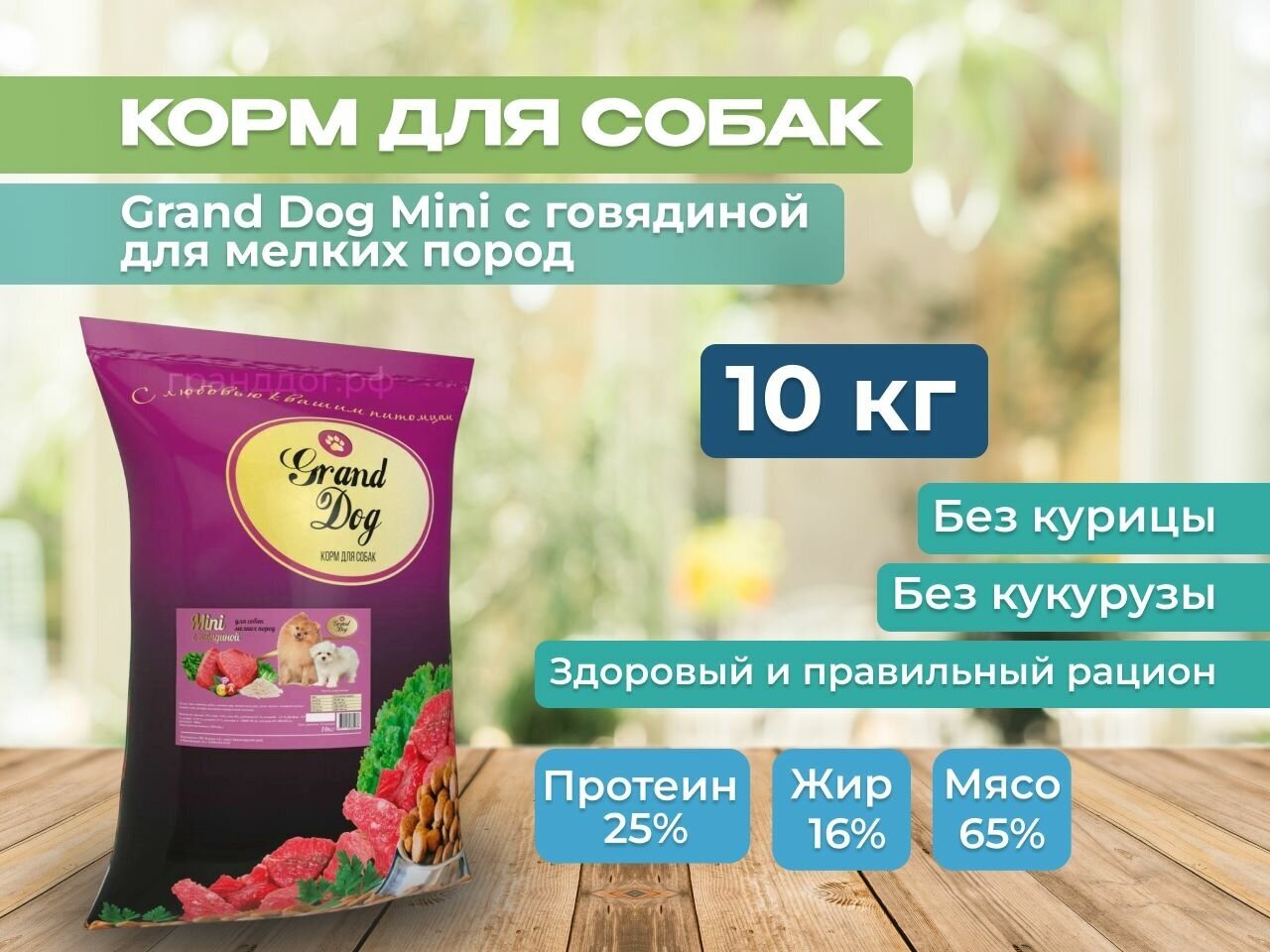 Гранд Дог, 10кг, MINI сухой корм с говядиной для собак мелких пород